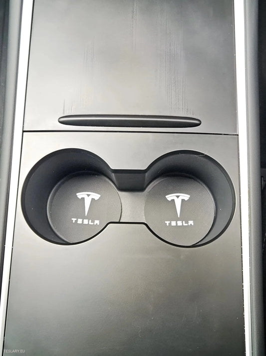 Tesla Model 3 Y S x Black Leather Center Console Cup Inserts med logo