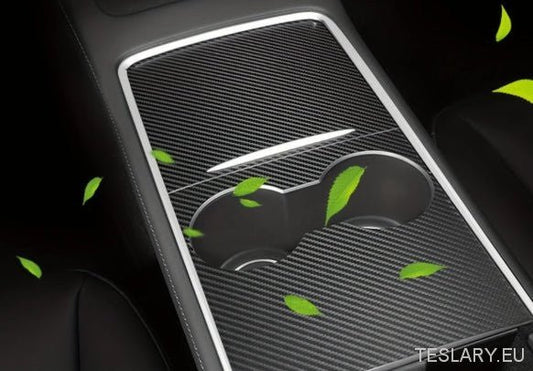Midtkonsoll TPU -deksler i svart/hvitt karbon og trekorn for Tesla Model 3/Y
