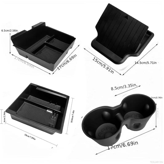 Tesla Model 3+ Highland/Model Y Juniper 4-1 Arrangør Kit Center Console Arrangørbrett, ABS-materiale, bare glatt-glide armlen-oppbevaringsboks med koppholder, bare kompatibel med Highland-modellen!