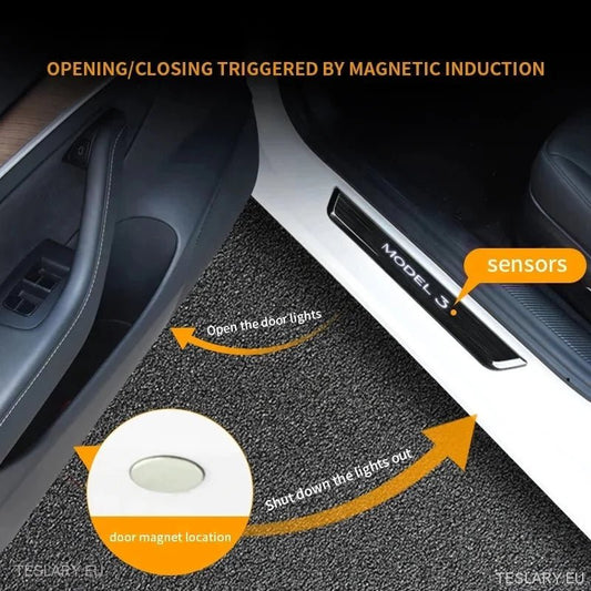 Tesla Model 3/Y Wireless Magnetic LED Illuminated Door Sills (4 stykker)