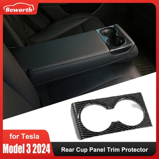 Tesla Model 3 Highland/Model Y Juniper Rear Cup Panel Trim Protector Cover ABS Karbonfiberstil