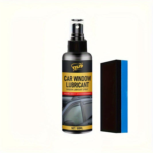 Bilvindu smøremiddel spray med svamp for effektiv påføring, reduserer soltakstøy og jevner glassspor. Ideell for smøring og vedlikehold.