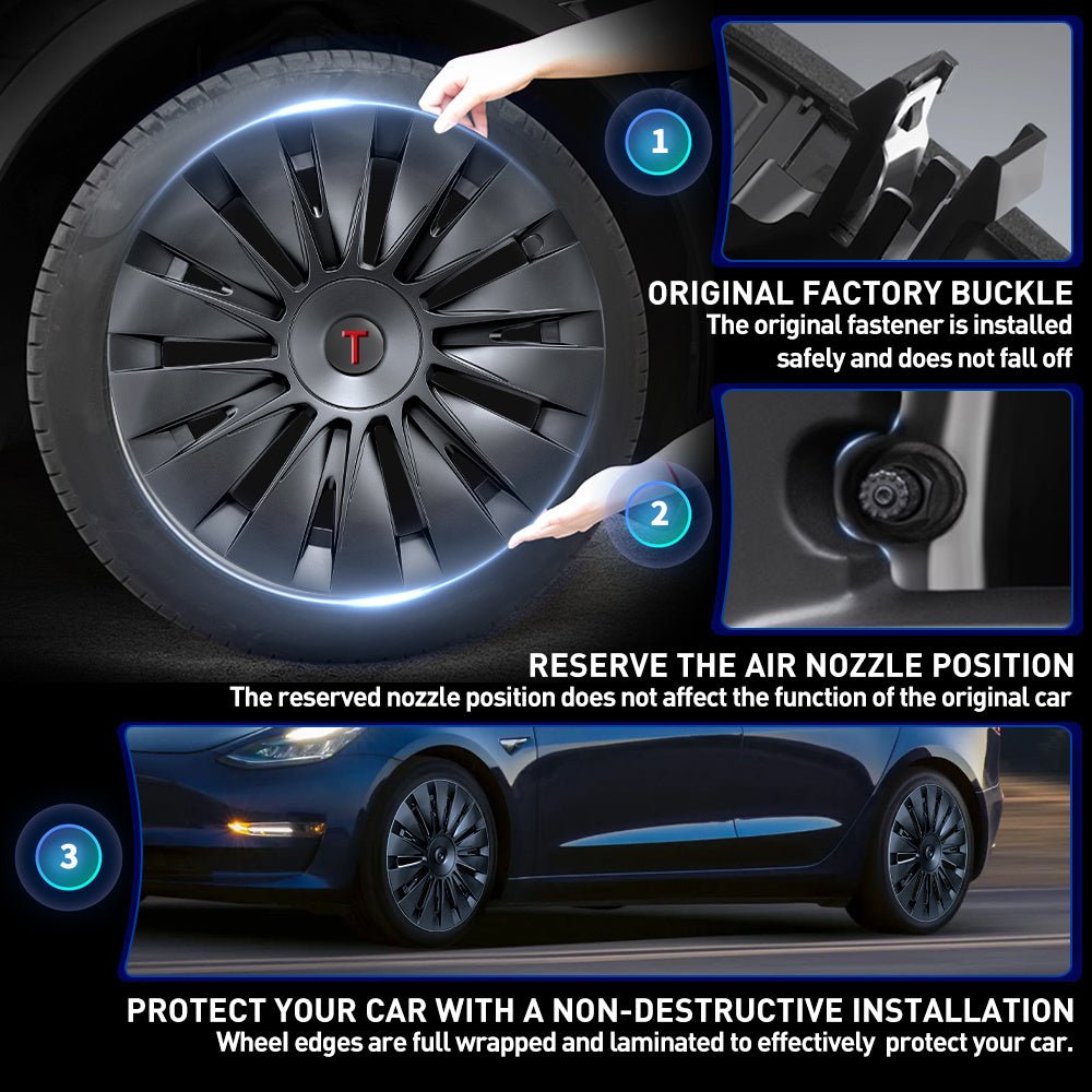 - 🔥 [Effortless Style Boost] Achieve an immediate visual transformation with these Matte Black Blade Style wheel covers, designed specifically for Tesla Model Y models from 2022 to 2025. This hub cover offers a straightforward yet highly effective way to elevate your vehicle’s appearance, providing a sleek and durable finish that complements the modern design of your Tesla. Engineered for a precise fit, it ensures seamless integration with your wheels, enhancing both style and protection. Ideal for Tesla owners seeking to refine their car’s aesthetic with minimal effort, this upgrade adds a bold, performance-inspired edge that sets your Model Y apart on the road.