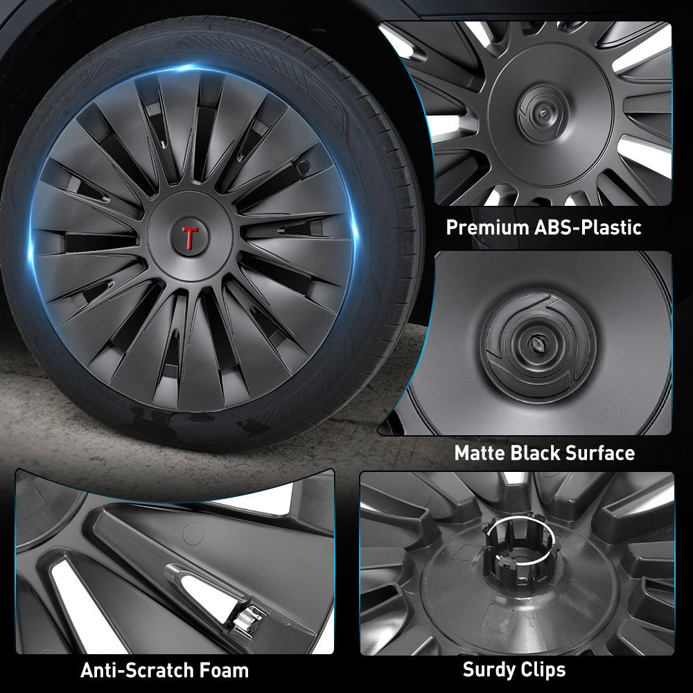 - Give your Model Y a sharp upgrade with these 48.26 cm hubcaps, offering a tailored, premium look that won’t break the bank. These wheel covers are the ultimate way to showcase your vehicle’s customized style.