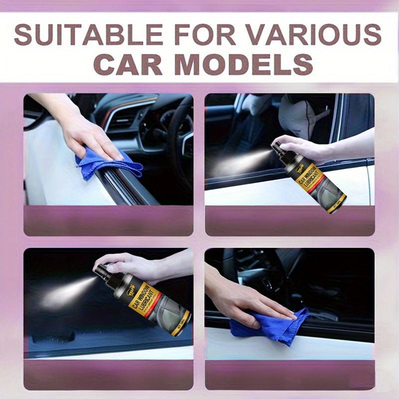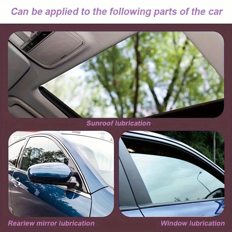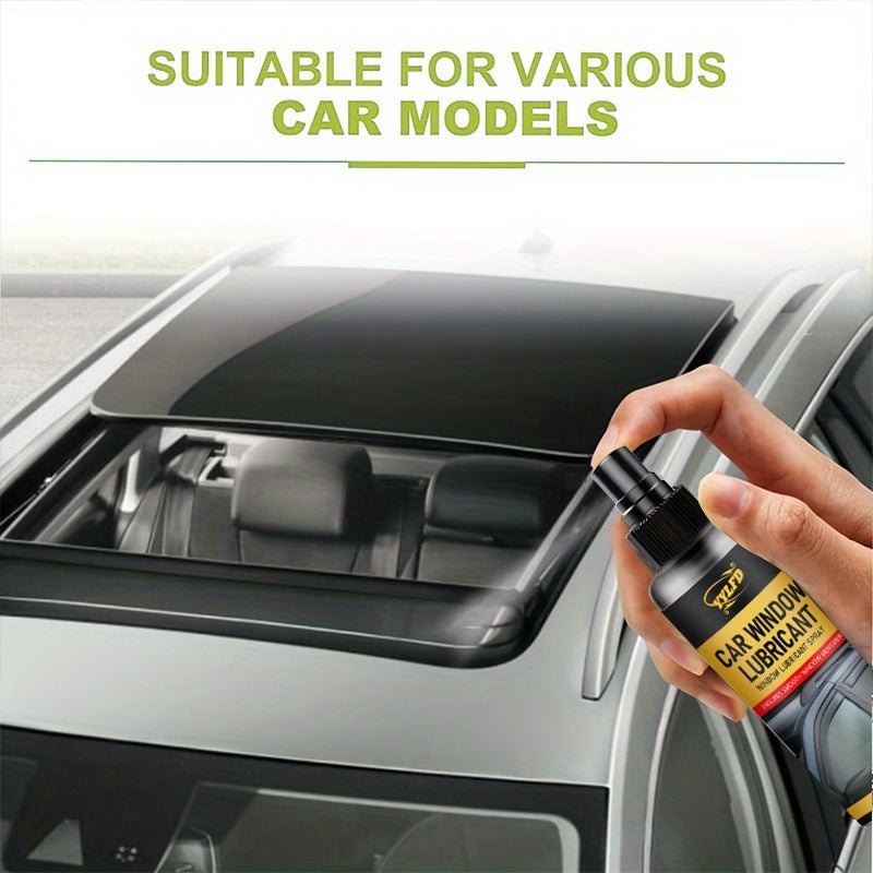 Bilvindu smøremiddel spray med svamp for effektiv påføring, reduserer soltakstøy og jevner glassspor. Ideell for smøring og vedlikehold.