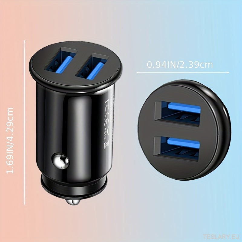 Mini USB Car Charger 2 Ports Fast Charger Adapter for EVs inkludert Tesla, BYD og mange flere