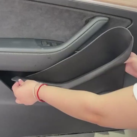 Tesla Model 3, Y og 3+ Highland oppbevaringslommer på siden av døren, vanntette heldekkende dørbrett foran og bak, 2 eller 4 deler, TPE-plastorganisator