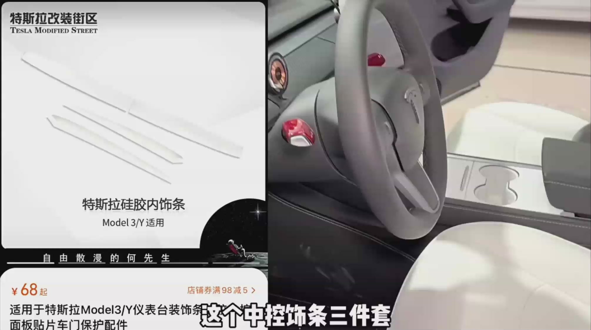 Silikon dashborddeksel med dørpanelinnsatser for Tesla 3/y (hvit)