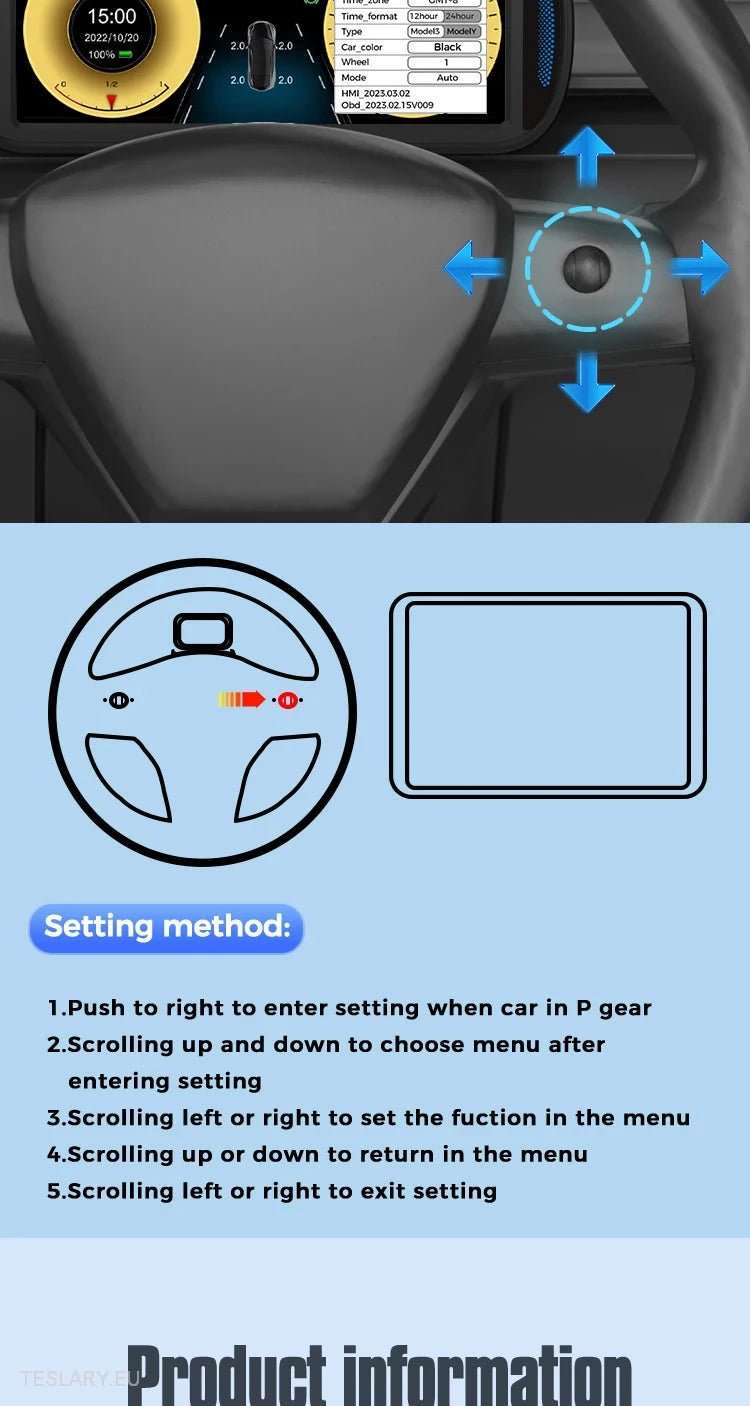 Tesla Model 3/Y-dashbord instrumentpanel 6.8" Bredt IPS-panel