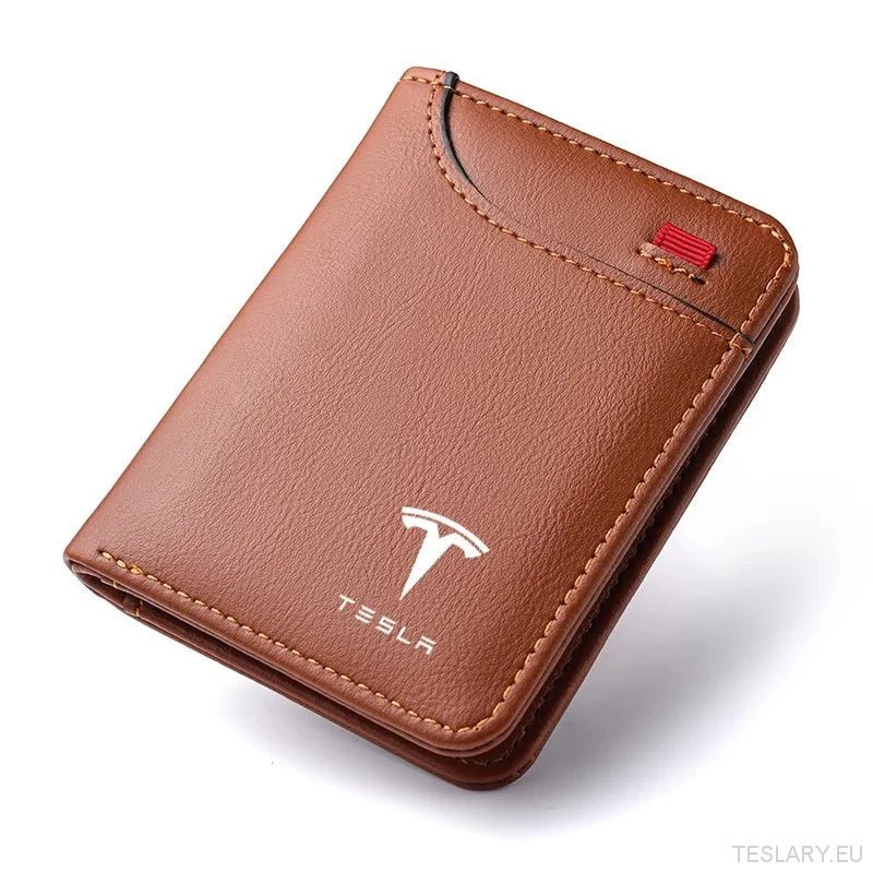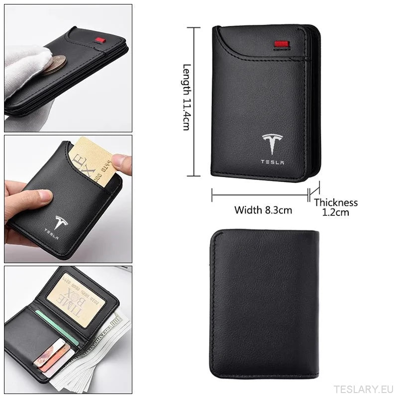 Myk lær mini lommebok med Tesla -logo