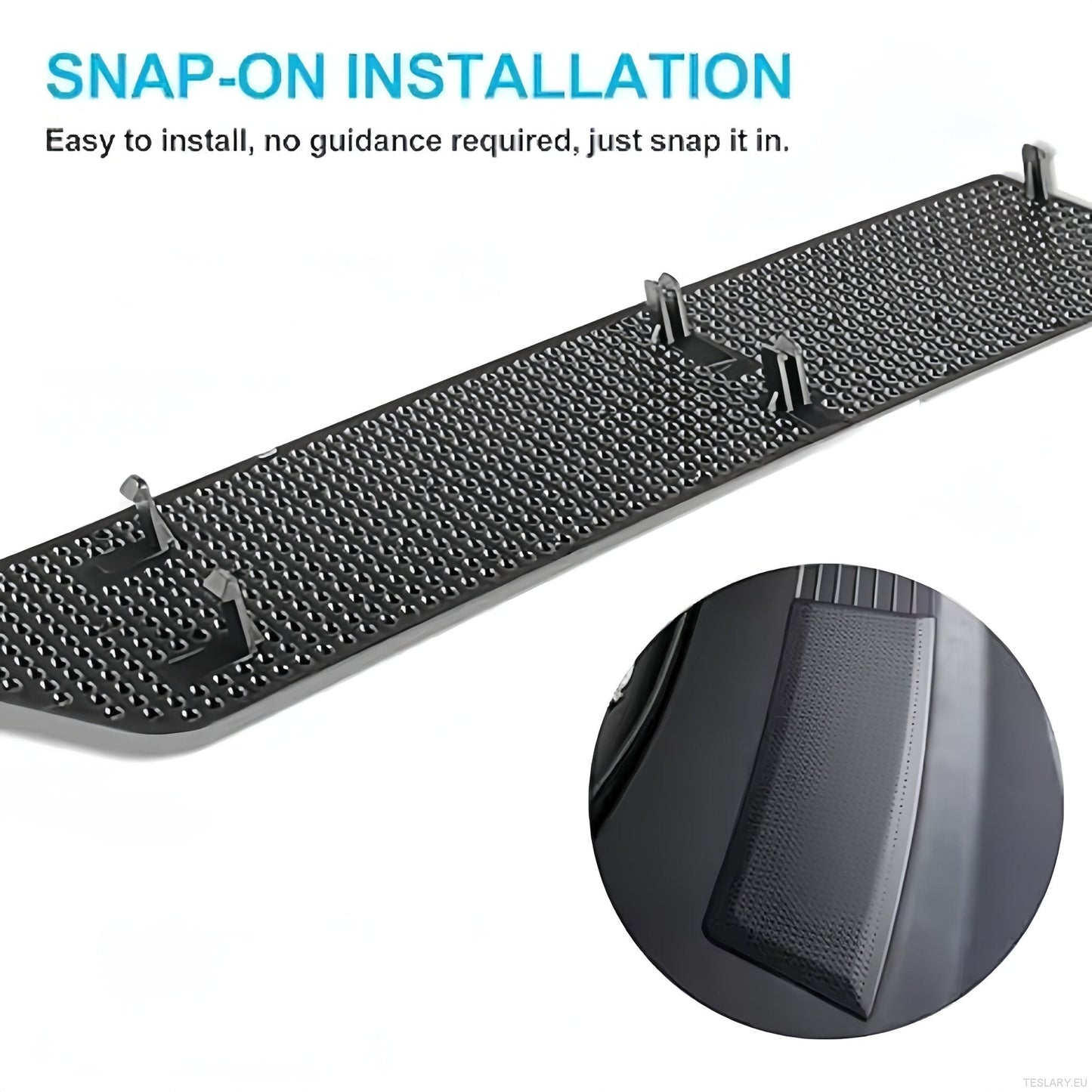 Med luftinntaksdekselet til Tesla Model 3+ Highland forbedrer du ikke bare bilens utseende, men også funksjonaliteten. Dette ventilerte dekorative panelet har et dobbelt formål, noe som gjør det til et uunnværlig tilbehør til bilen din. Og med designet spesielt tilpasset den nye Model 3 Highland-modellen, får du en unik og stilig oppgradering som skiller seg ut fra mengden.