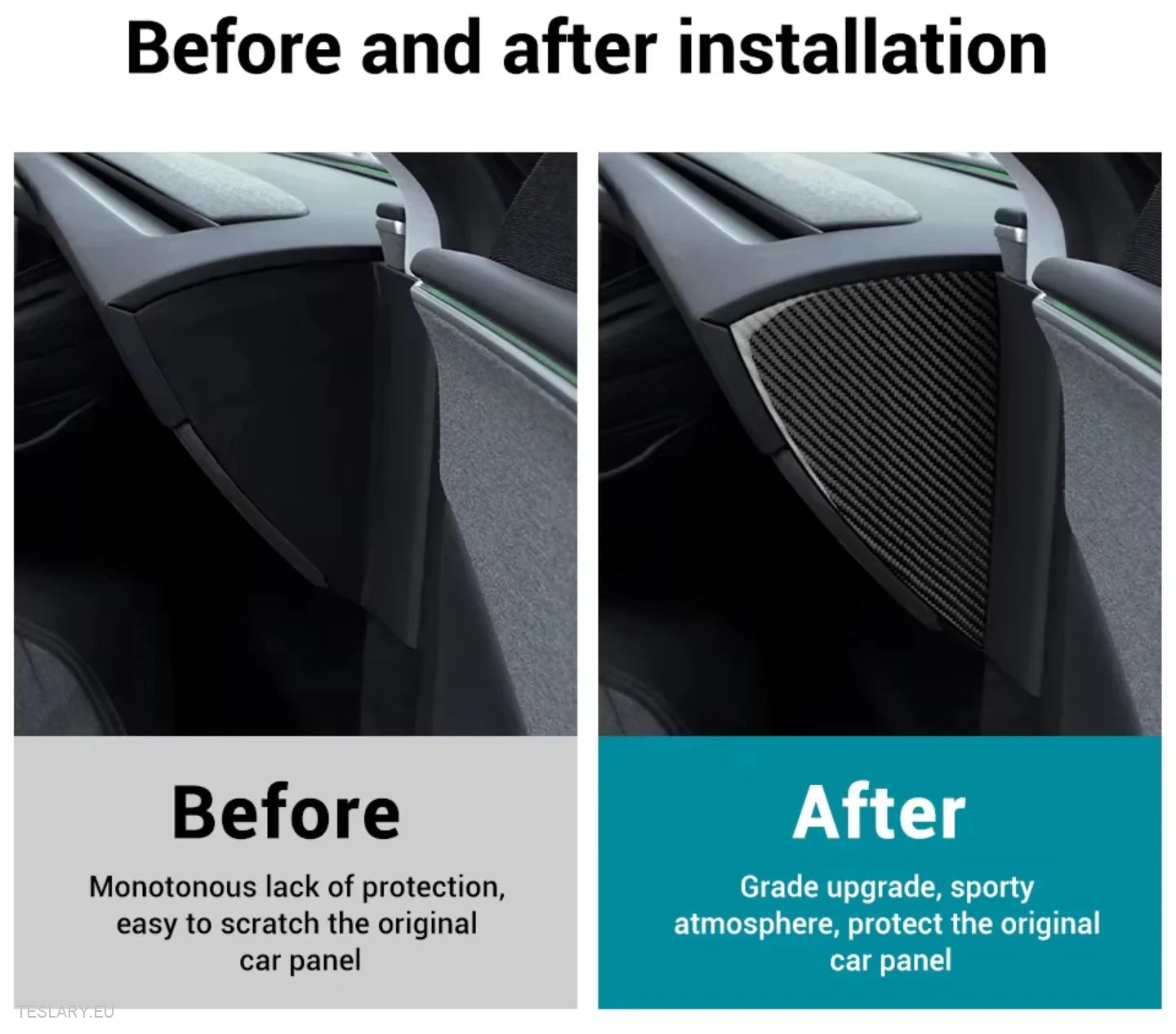 Disse sidedetaljene til dashbordet på Tesla Model 3 Highland er laget av ekte myk karbonfiber og kombinerer holdbarhet med en lett design som forbedrer bilens interiørestetikk. Hver del er sikkert festet med et høykvalitets billim, noe som sikrer et fast grep som tåler daglig bruk og miljøfaktorer. Til tross for styrken er limet konstruert for å ikke etterlate rester eller skader hvis du bestemmer deg for å fjerne eller flytte listen i fremtiden, og bevare dashbordets plettfrie tilstand. Denne gjennomtenkte designen muliggjør enkel montering og fjerning, noe som gjør den til en ideell oppgradering for de som ønsker både stil og fleksibilitet uten å gå på kompromiss med de originale interiøroverflatene.