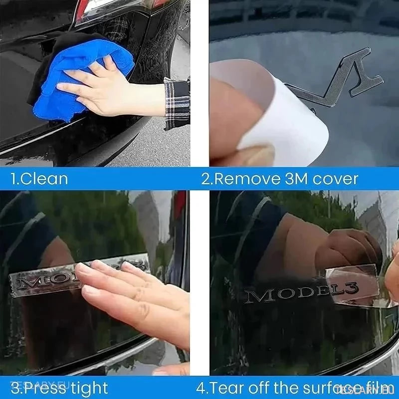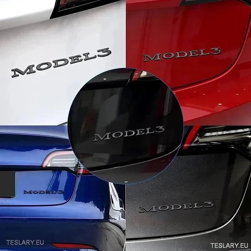 Tesla "Model 3" baklogoemblem i Chrome & Black