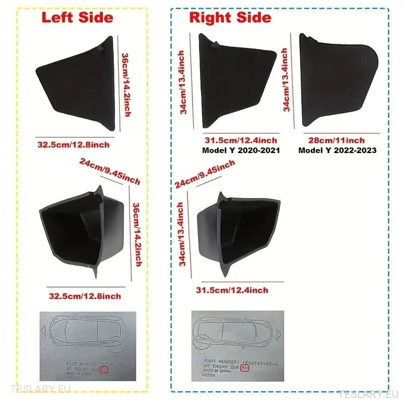 Tesla Model 3 Bak -bagasjeromsarrangør Sidelomme med lokk