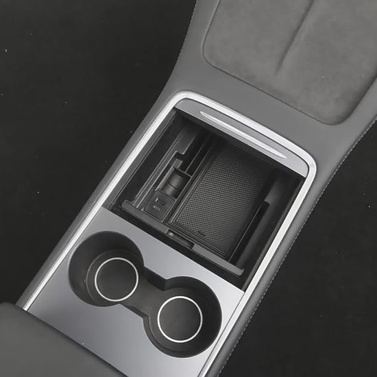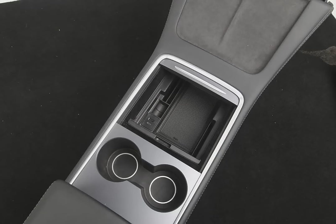 Denne midtkonsollorganisatoren til Tesla Model 3/Y er perfekt for å holde briller, penger, telefon og andre småting organisert og lett tilgjengelige mens du kjører. Med den ekstra bekvemmeligheten av en USB-port med fjærretur kan du enkelt lade enhetene dine mens du er på farten. Hold deg organisert og tilkoblet med dette viktige biltilbehøret.