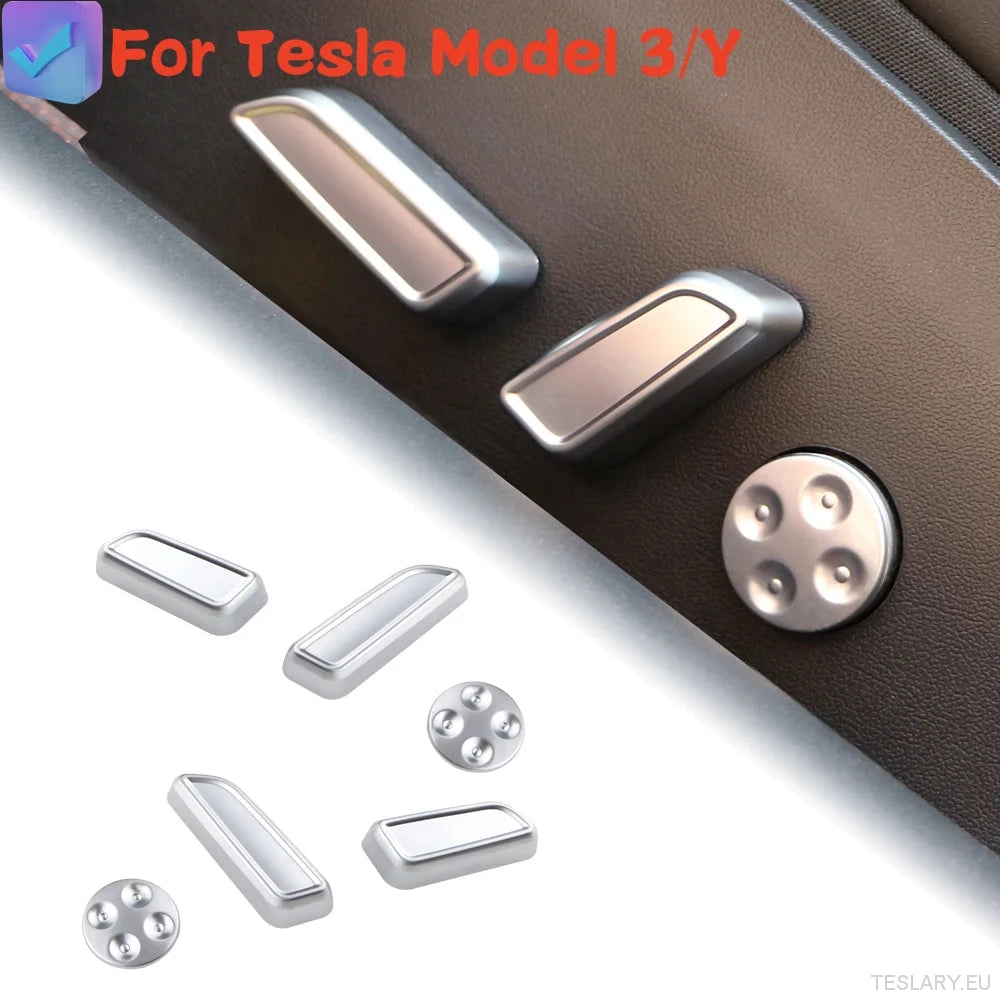 Premium Chrome Seat Justering Trim Covers for Tesla Model 3 og Model Y