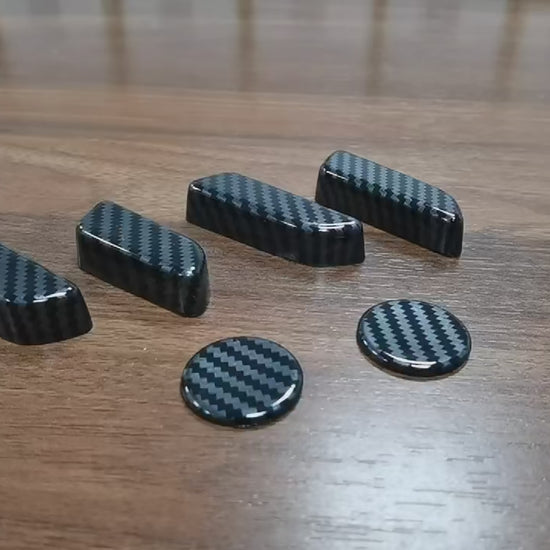 Maksimer beskyttelsen av bilens interiør og legg til et elegant og stilig preg med våre karbonfiber ABS-fulldekkende knappebeskyttere. I motsetning til andre deksler som bare dekker én overflate, tilbyr designet vårt full beskyttelse på alle sider av seteknappene.