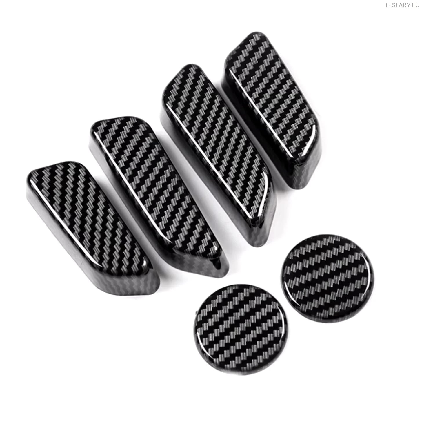 Løft utseendet og følelsen til din Tesla Model 3 eller Model Y med disse elegante setekontrollknappene i karbonfiberstil. Fagmessig laget for en merkbar, men diskré oppgradering av interiøret.