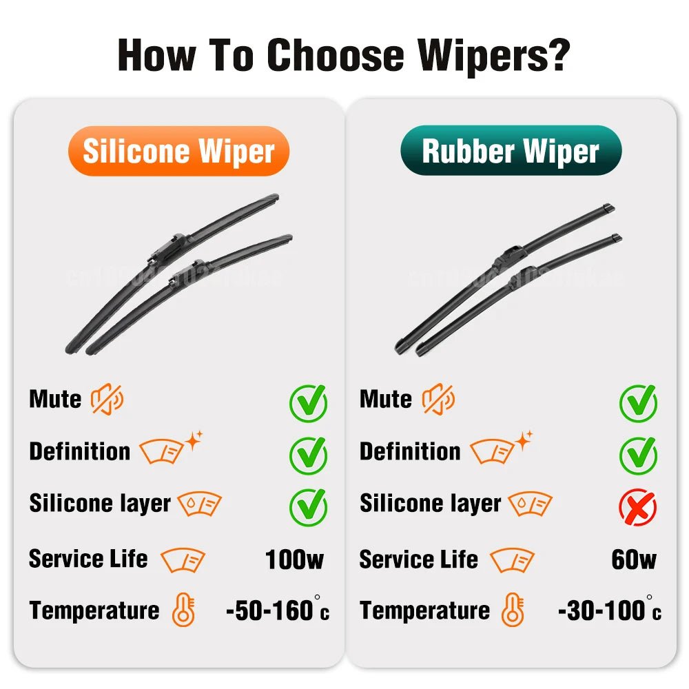[Perfekt passform garantert:Disse vindusviskerne er spesielt utviklet for bilmodeller produsert fra 2012 til 2023, og er en sømløs oppgradering. Du trenger ikke å bekymre deg for kompatibilitet. Presisjonsdesignet sikrer en tettsittende passform, slik at de monteres sikkert og fungerer optimalt. Oppgrader bilens estetikk mens du er i gang!