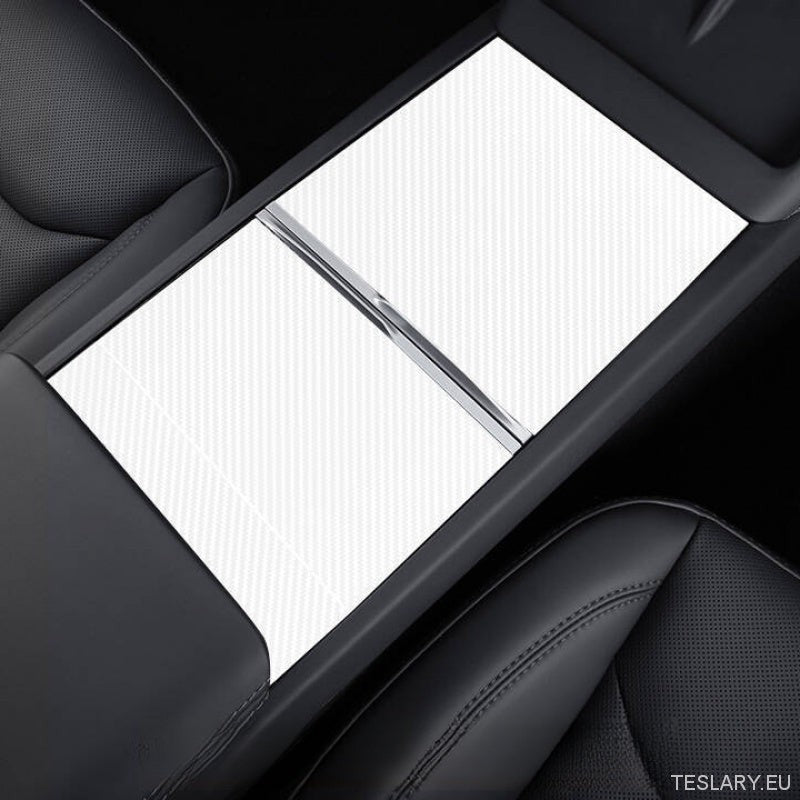 Midtkonsoll TPU -deksler i svart/hvitt karbon og trekorn for Tesla Model 3/Y
