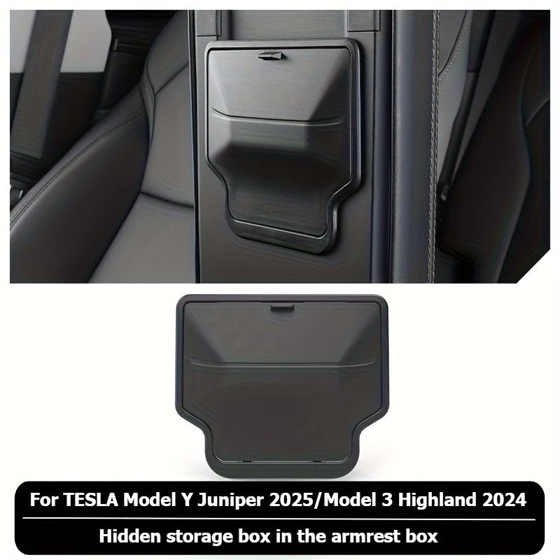 Tesla for Model Y Juniper 2025 & Highland Model 3 Hidden Armrest Storage Box Organizer - Sleek Black Premium Car Interior Accessory with Space