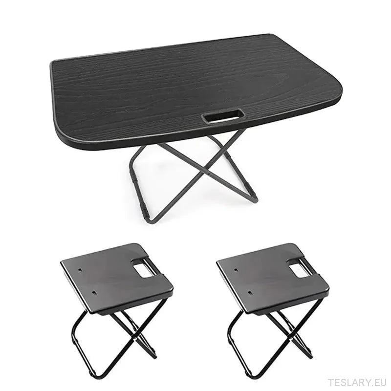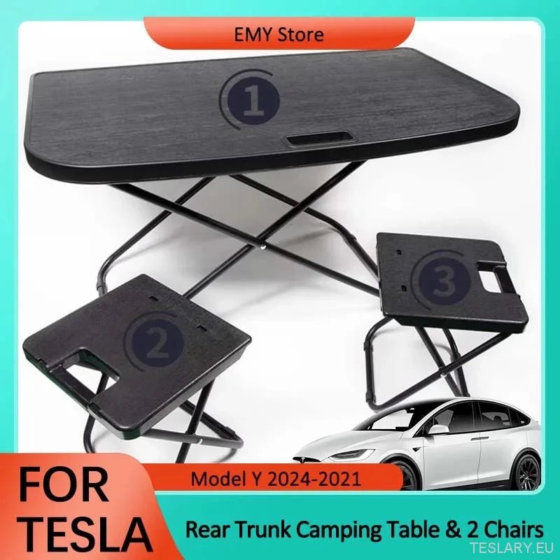 PASSER FOR TESLA MODEL Y 2022–2025 CAMPINGBORD OG 2 STOLER – KAN SAMMES INN I BAGASJEROMMET