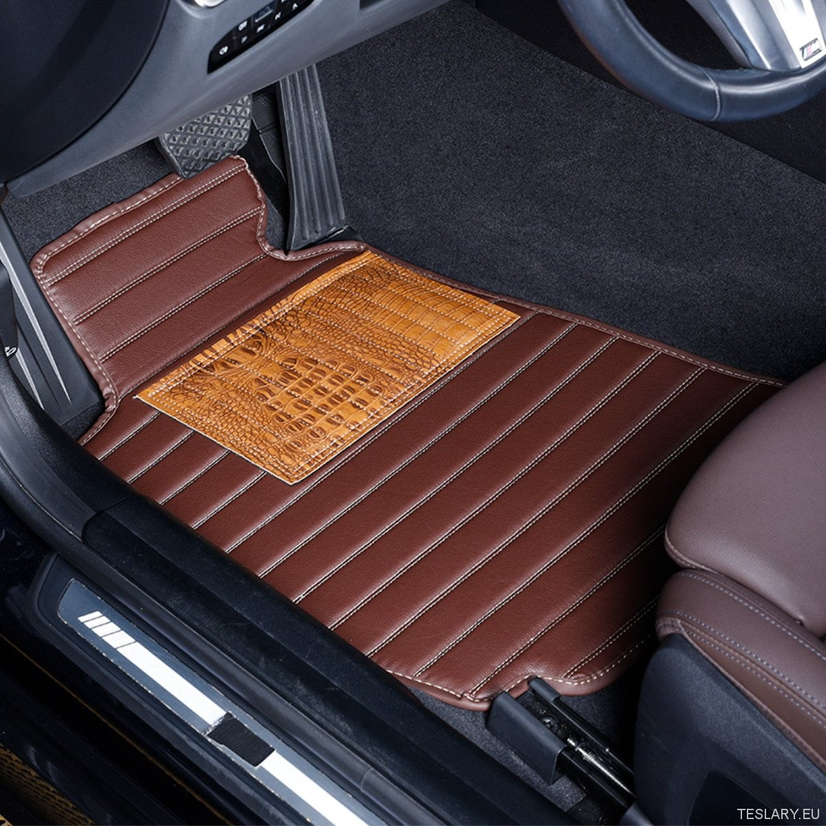 Tesla Model Y 2019-2025 Høyre kjørebilmatter, tre-lags PVC Stripe Design, Luxury & Dunable Floor Mat Accessories For Car Interior