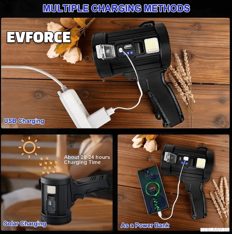 Den ultralyse, oppladbare spotlighten er et viktig tilbehør for alle elbileiere, inkludert Tesla, BYD, MG og andre. Den kompakte og slitesterke designen sikrer at den alltid er klar til bruk, enten det er under uventede veikantnødsituasjoner, reparasjoner om natten eller utendørsaktiviteter. Med flere lysmoduser, solcelle- og USB-ladealternativer, og muligheten til å drive telefonen eller andre enheter, forbedrer denne lommelykten din beredskap og sikkerhet på veien. Å ha denne pålitelige, multifunksjonelle spotlighten i elbilen din garanterer trygghet og praktisk støtte når du trenger det mest.